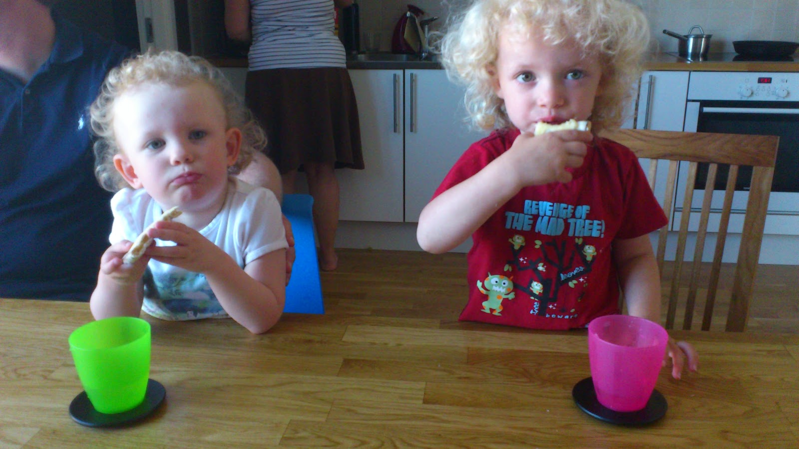Klockan blir åtta och fågelskrikmongot väcker andra barnet. Dags för allmän uppstigning alltså. Bolibompa, välling och ett klättrande barn.